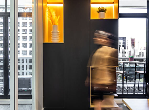 Escritórios, stands, recepções e salas do cliente.